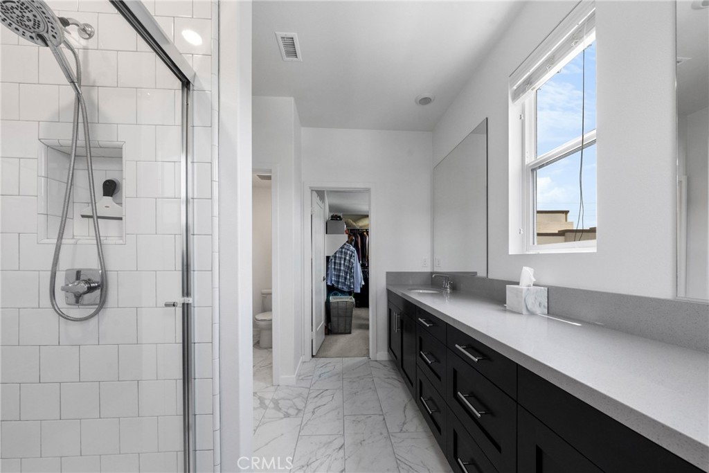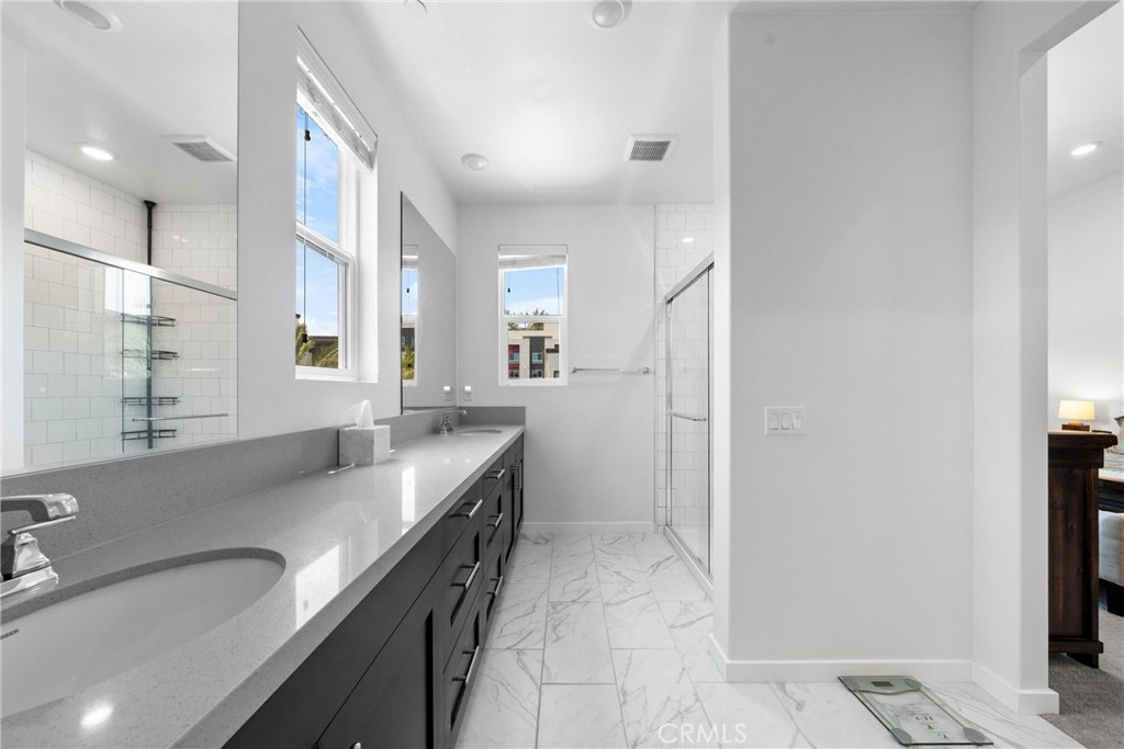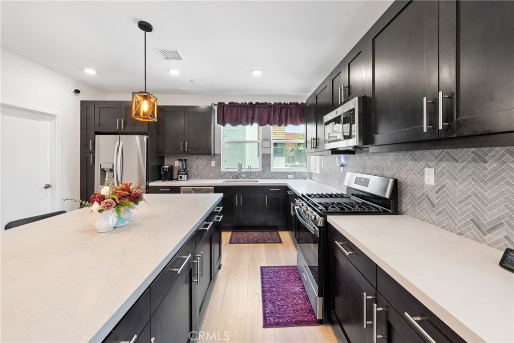 Step inside to soaring ceilings, oversized windows, and an open-concept layout flooded with natural light. The gourmet kitchen features high-end stainless steel appliances, quartz countertops, custom cabinetry, and a large island - perfect for everyday living and entertaining. The primary suite is a private retreat with dual vanities, walk-in shower, and spacious walk-in closet. Additional highlights include wide-plank hardwood floors, custom lighting, a private rooftop deck with pool views, whole-house water softener, reverse osmosis system, and fully paid solar panels for energy efficiency.